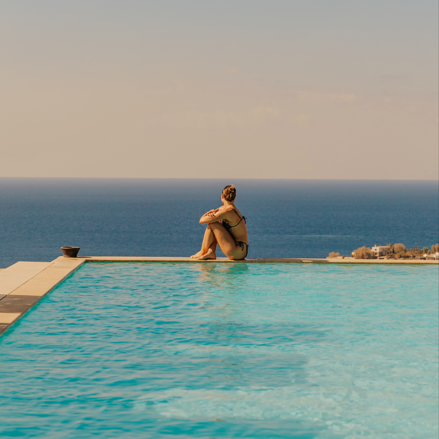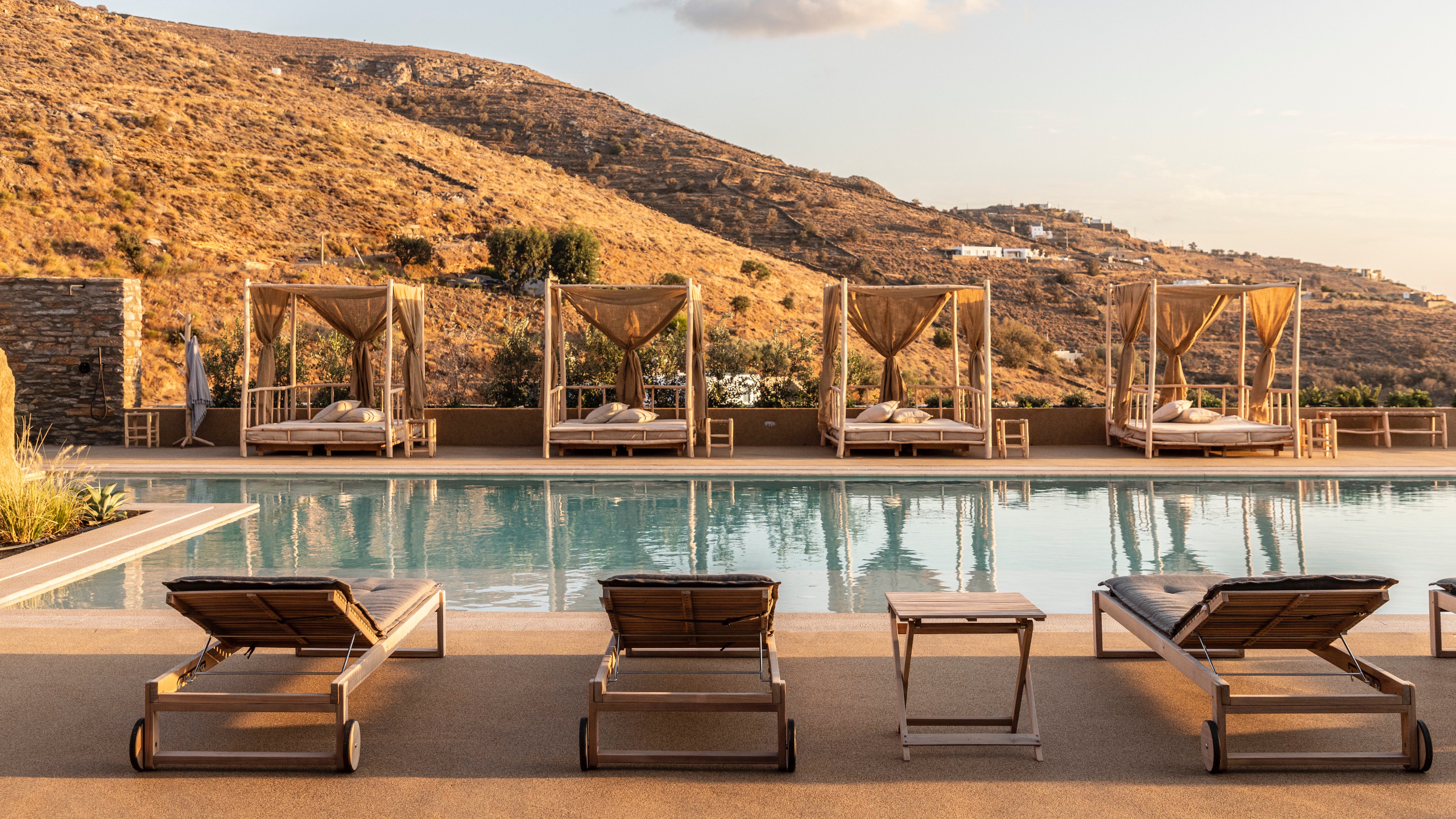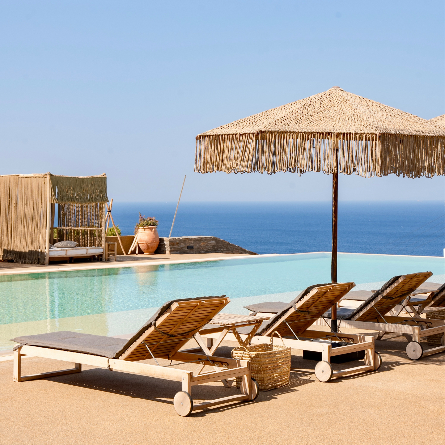 The outdoor spaces at Villa Nāos are a sanctuary of serenity. The private pool beckons guests to cool off while soaking in the panoramic views. Lush gardens surround the property, providing a verdant backdrop for moments of peaceful contemplation.