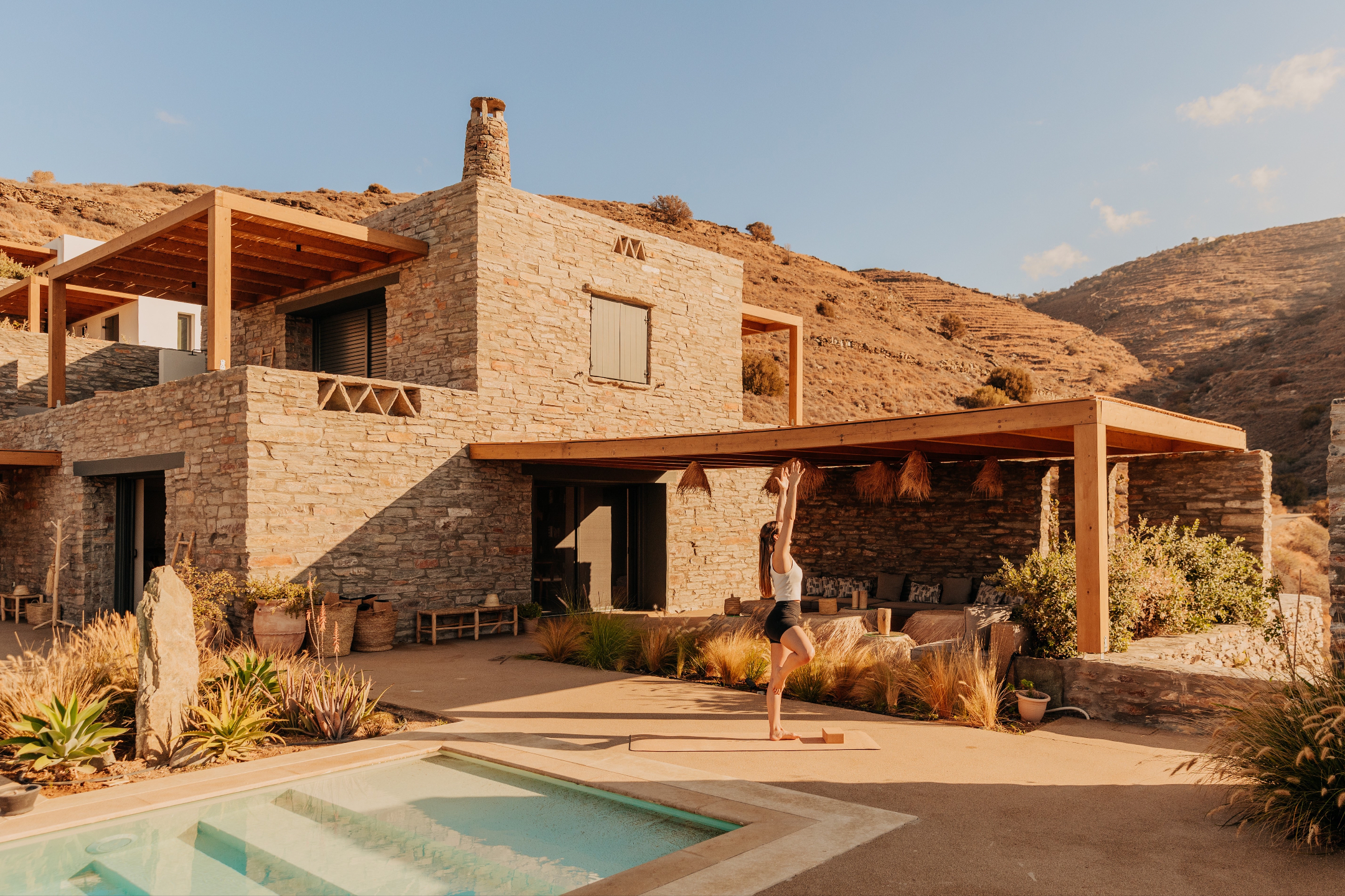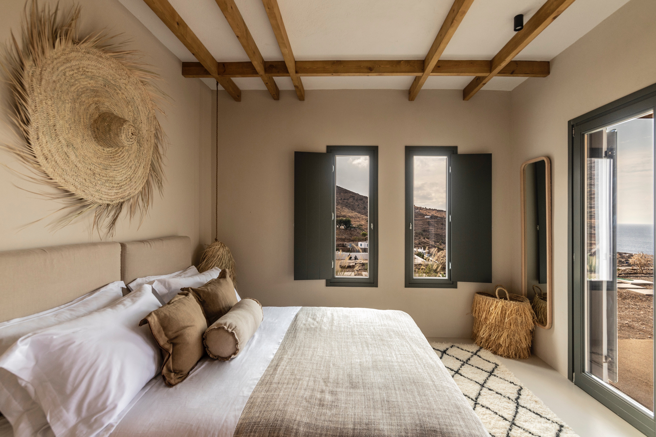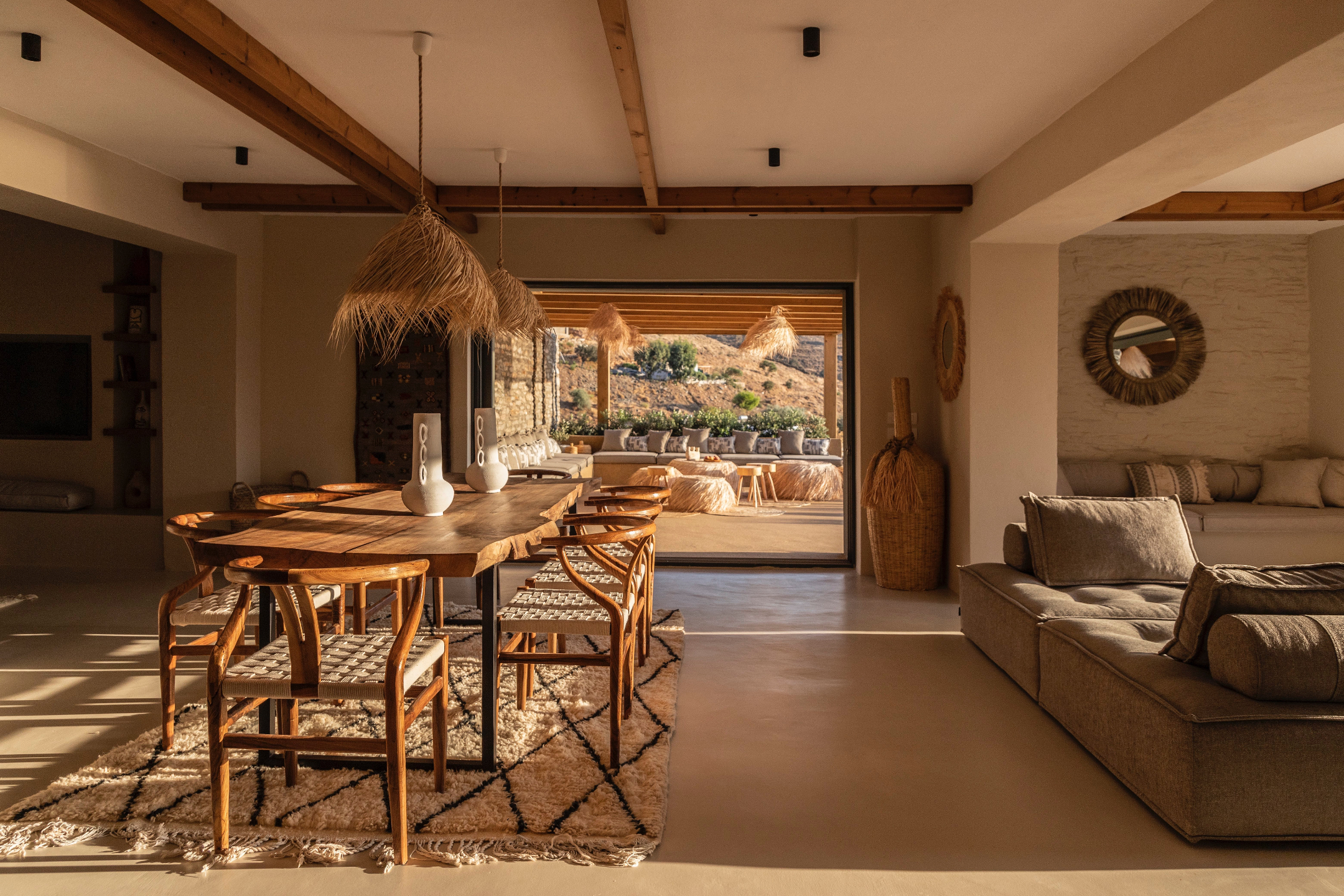 Villa Nāos captivates with its minimalist design, seamlessly blending modern aesthetics with the island’s traditional charm. The crisp white exterior reflects the sun’s warmth, while the the raw authenticity of the stone pay homage to Kea’s architectural heritage. Inside, the villa boasts spacious living areas adorned with tasteful furnishings and curated artwork. Large windows flood the interiors with natural light, creating an airy and inviting atmosphere. Guests can indulge in the ultimate relaxation, whether lounging in the stylish living room or enjoying an al fresco meal on the expansive terrace.